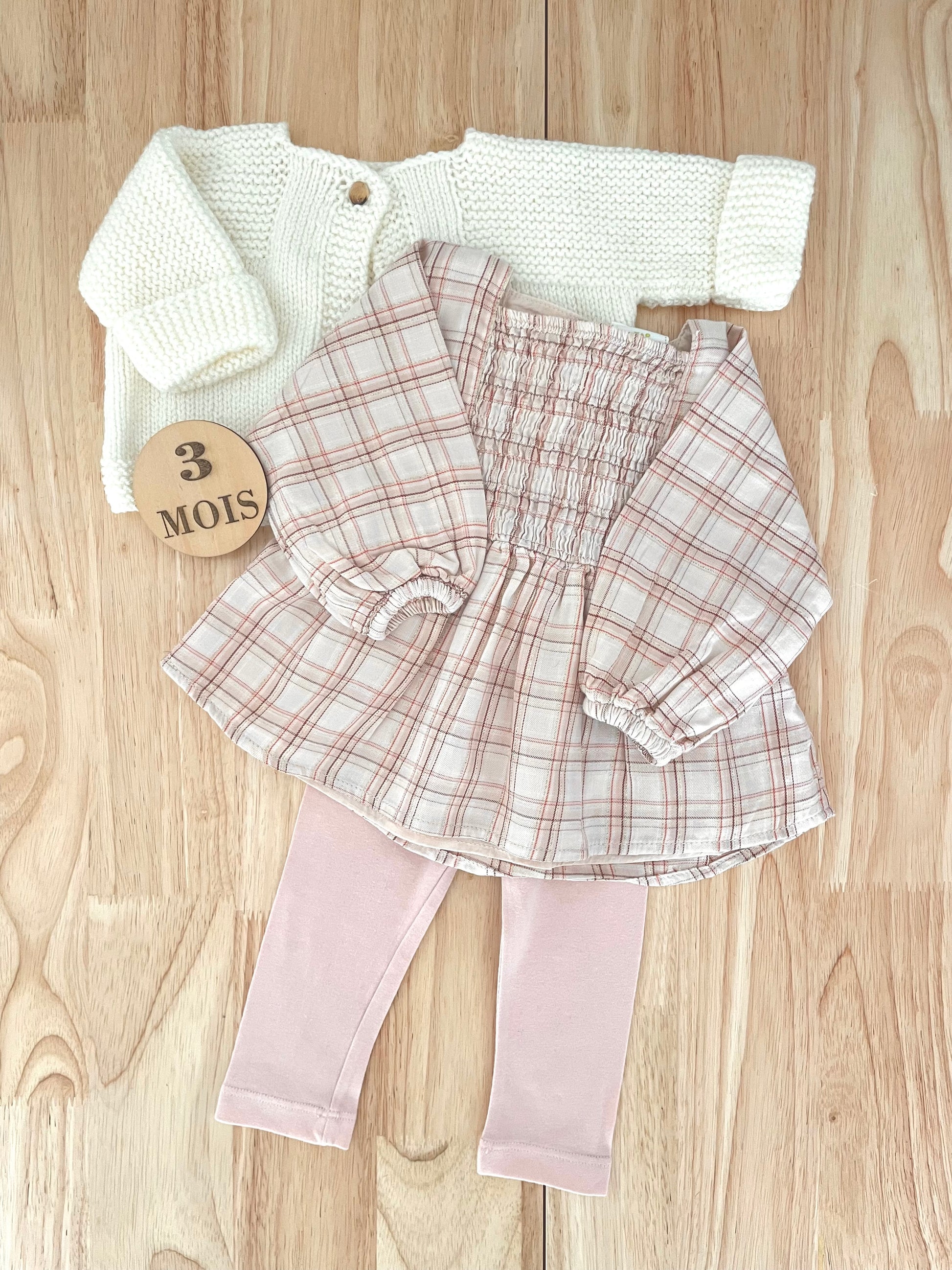 Ensemble 3 pièces, écru et rose