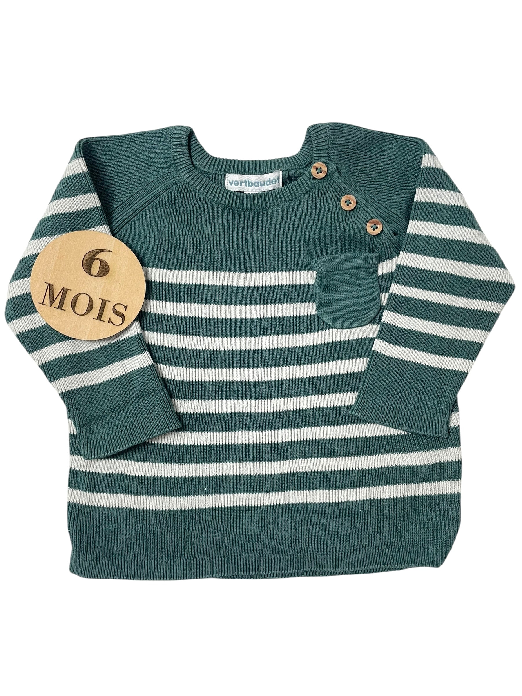 Pull fin, vert, rayé, Vertbaudet