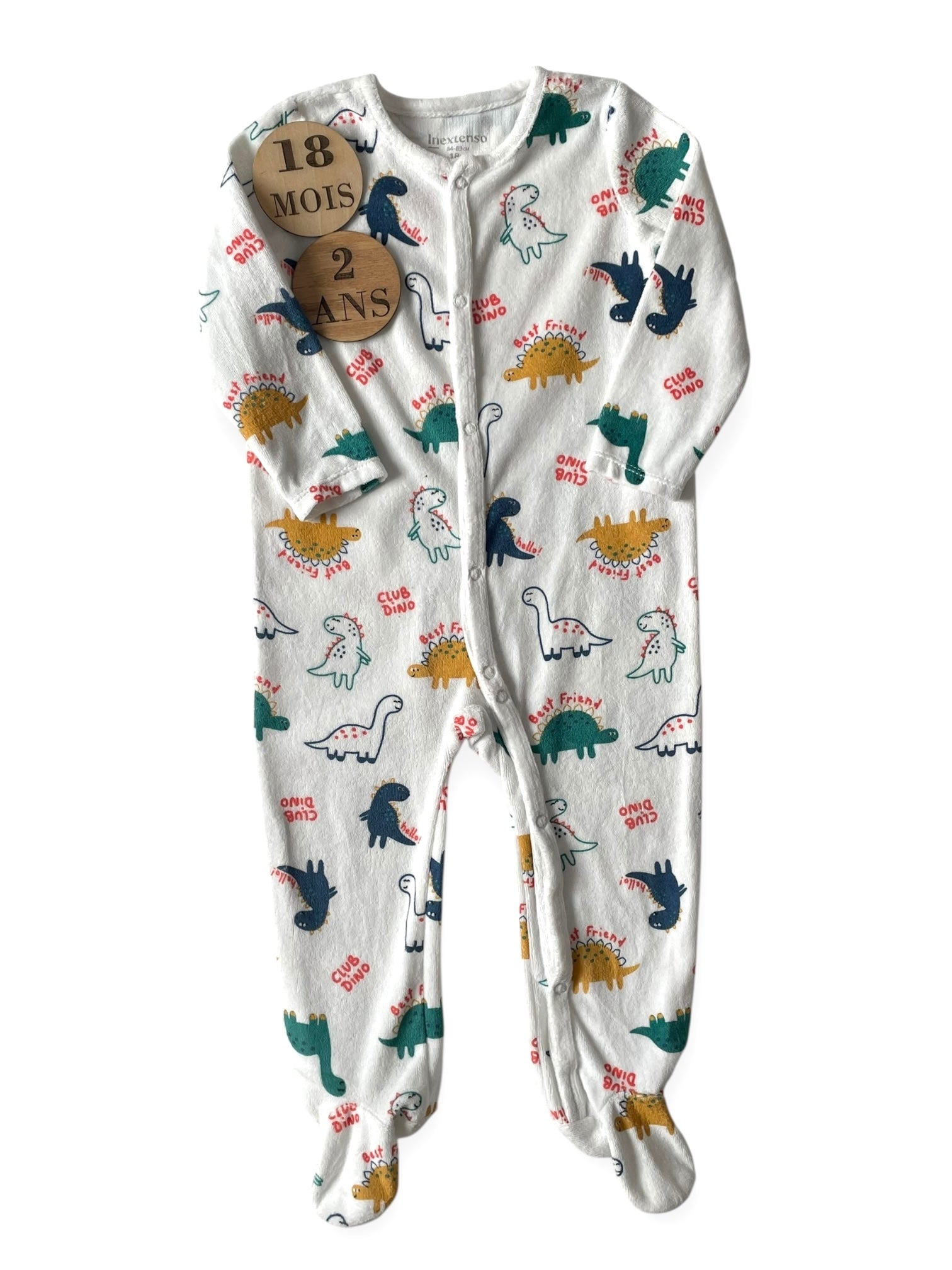 Pyjama velours blanc, dinosaures, In extenso
