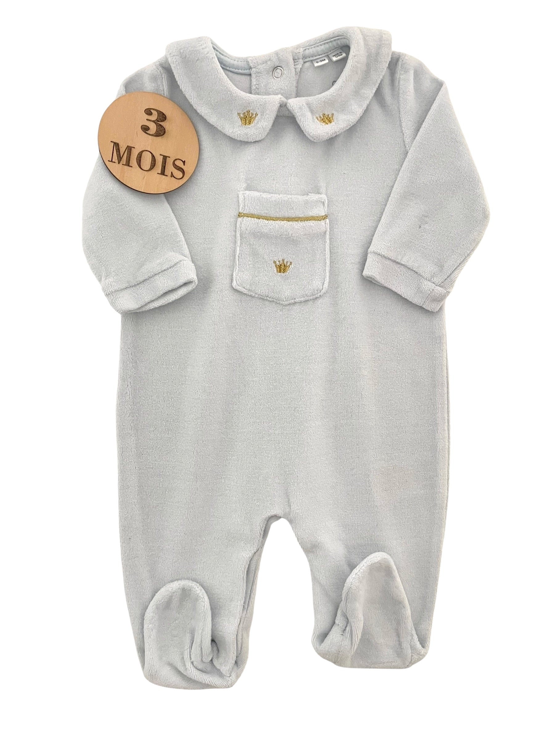 Pyjama velours vintage, bleu-ciel, Bonjour Bébé